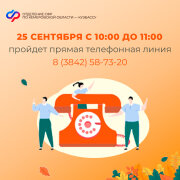 25 сентября, в четверг, с 10 до 11 часов в Отделении Социального фонда России по Кемеровской области - Кузбассу пройдет телефонная прямая линия.