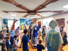 В Городском центре культуры Мысков для гостей подготовили этнографическую и литературную выставки, а также мастер-классы по шорской письменности и выступления творческих коллективов.