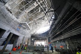 На строительной площадке Театра оперы и балета, рассчитанного на 950 мест, завершен важный этап возведения несущих конструкций. После завершения монтажа каркаса и монолитных работ продолжается установка уникальной шаростержневой конструкции и многослойного фасада с витражами. Параллельно с созданием внешнего облика театра внутри здания идут отделочные процессы: рабочие утепляют стены, возводят перегородки, наносят штукатурку и прокладывают инженерные сети. Уже смонтирована большая часть эскалаторов и начата установка лифтов.